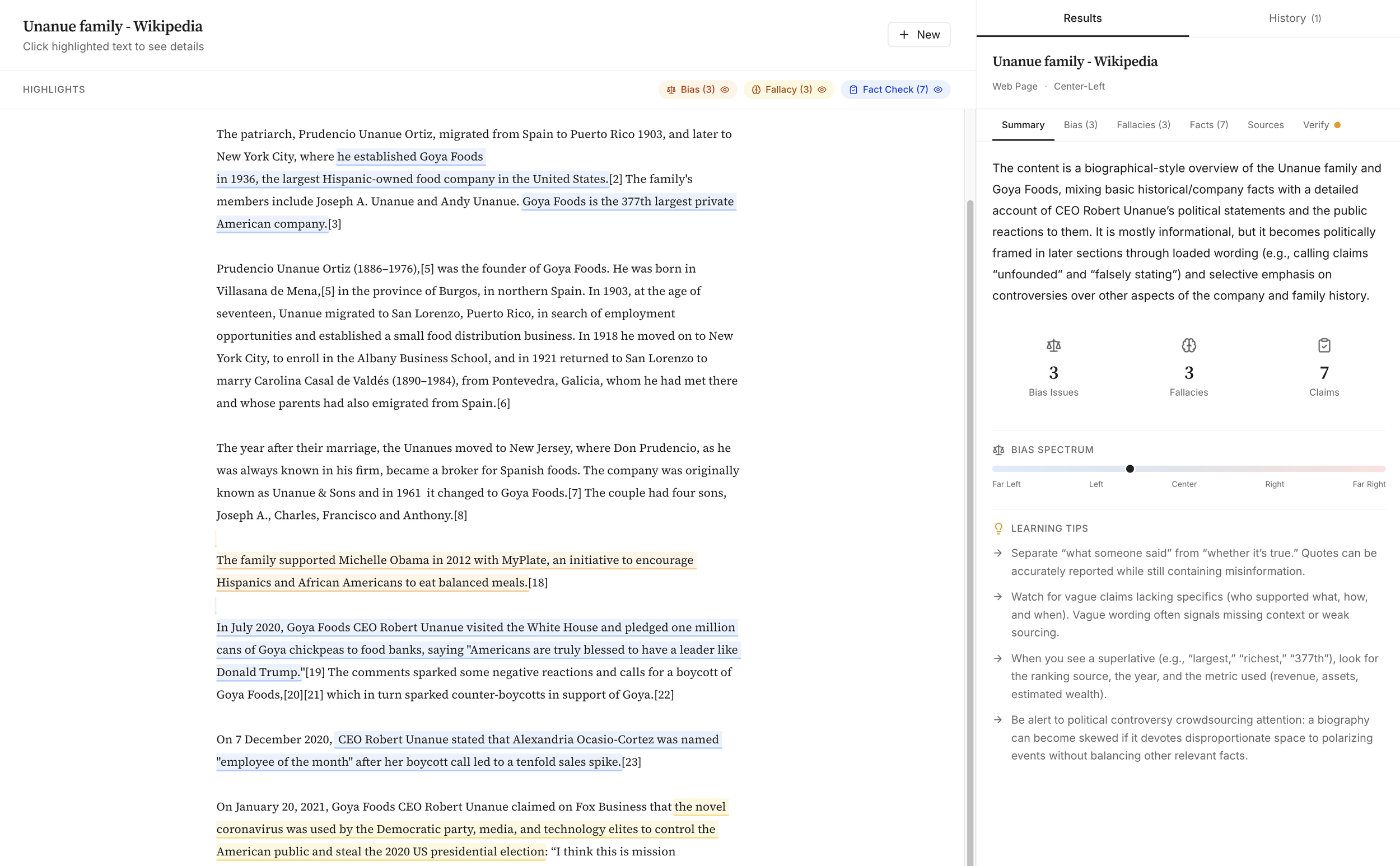 Bias Detection: Points out when information leans too far toward one side of an issue